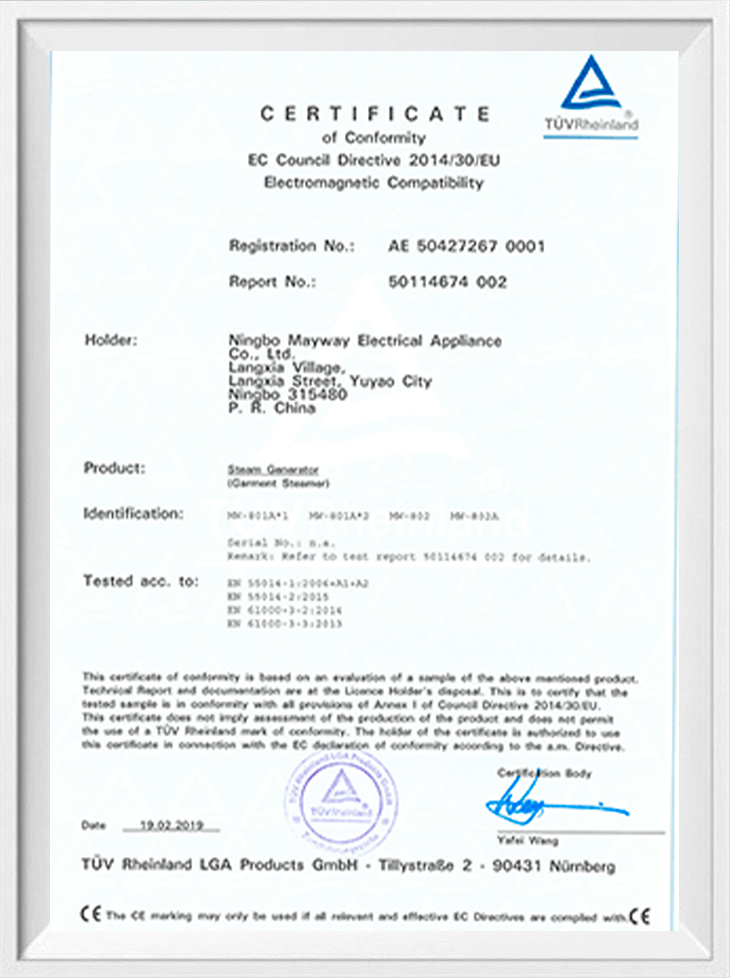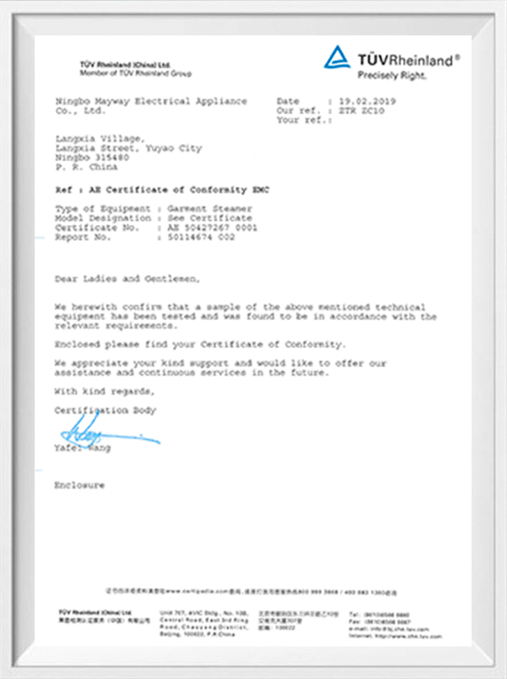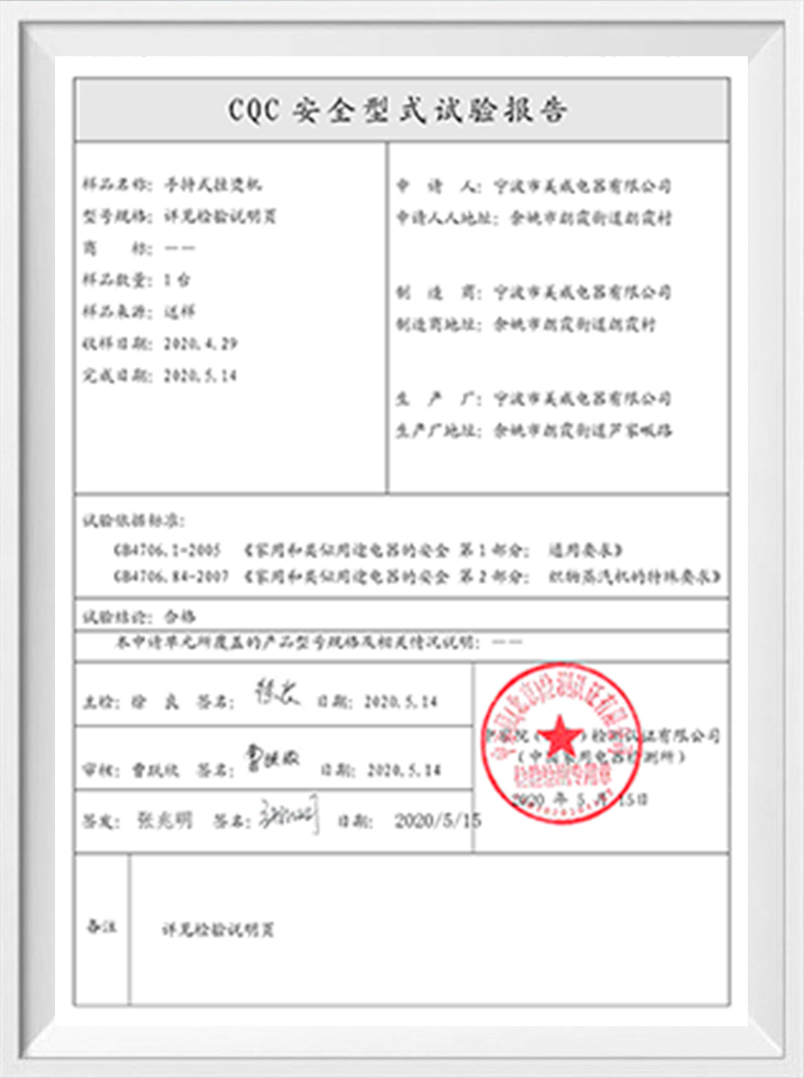 Nous sommes un fabricant et exportateur professionnel avec la conception, le développement, la production, la vente et les services associés. L'usine s'étend sur 4000 mètres carrés, nous avons été équipés de forces techniques fortes ainsi que d'équipements de pointe, et nous pouvons donc répondre à vos exigences à tous égards en matière de capacité de production et de qualité. Nos produits comprennent un fer électrique, un défroisseur à vapeur portatif, une brosse à vapeur, etc. Nous avons été certifiés selon la norme internationale d'assurance qualité ISO 9001 et BSCI. De plus, les produits sont homologués CE/GS/CB/ROHS/ERP/PAH.